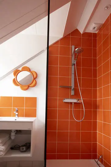 L'orange du papier peint (emblématique des années 70) s’accorde avec la gravure « Panam Building » de Pol Bury (auteur de la fontaine du Palais Royal près des colonnes de Buren).