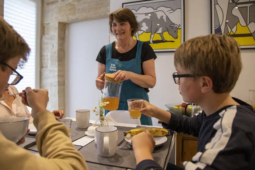 Le matin vous êtes les bienvenus au petit-déjeuner, avec plein de produits faits maison.